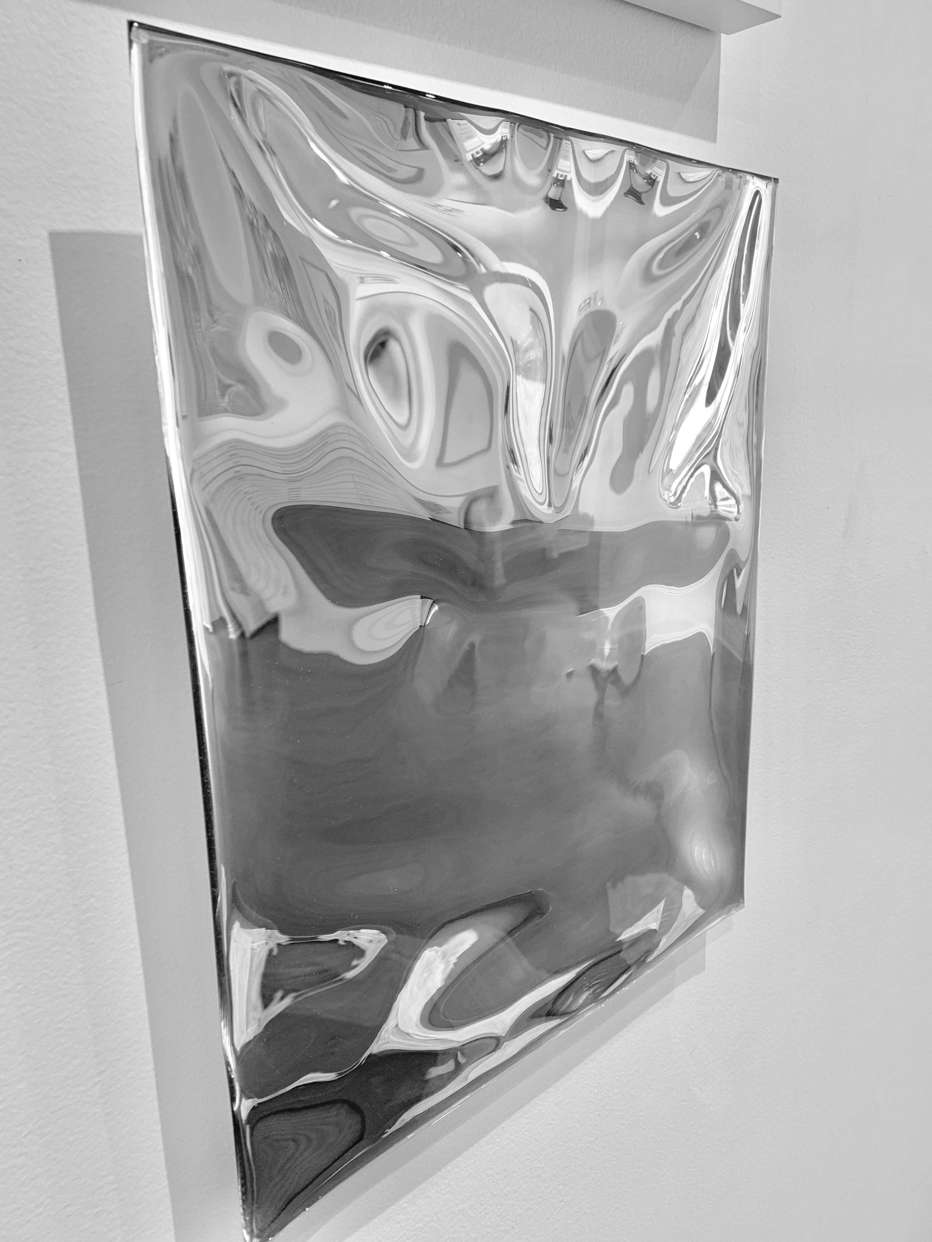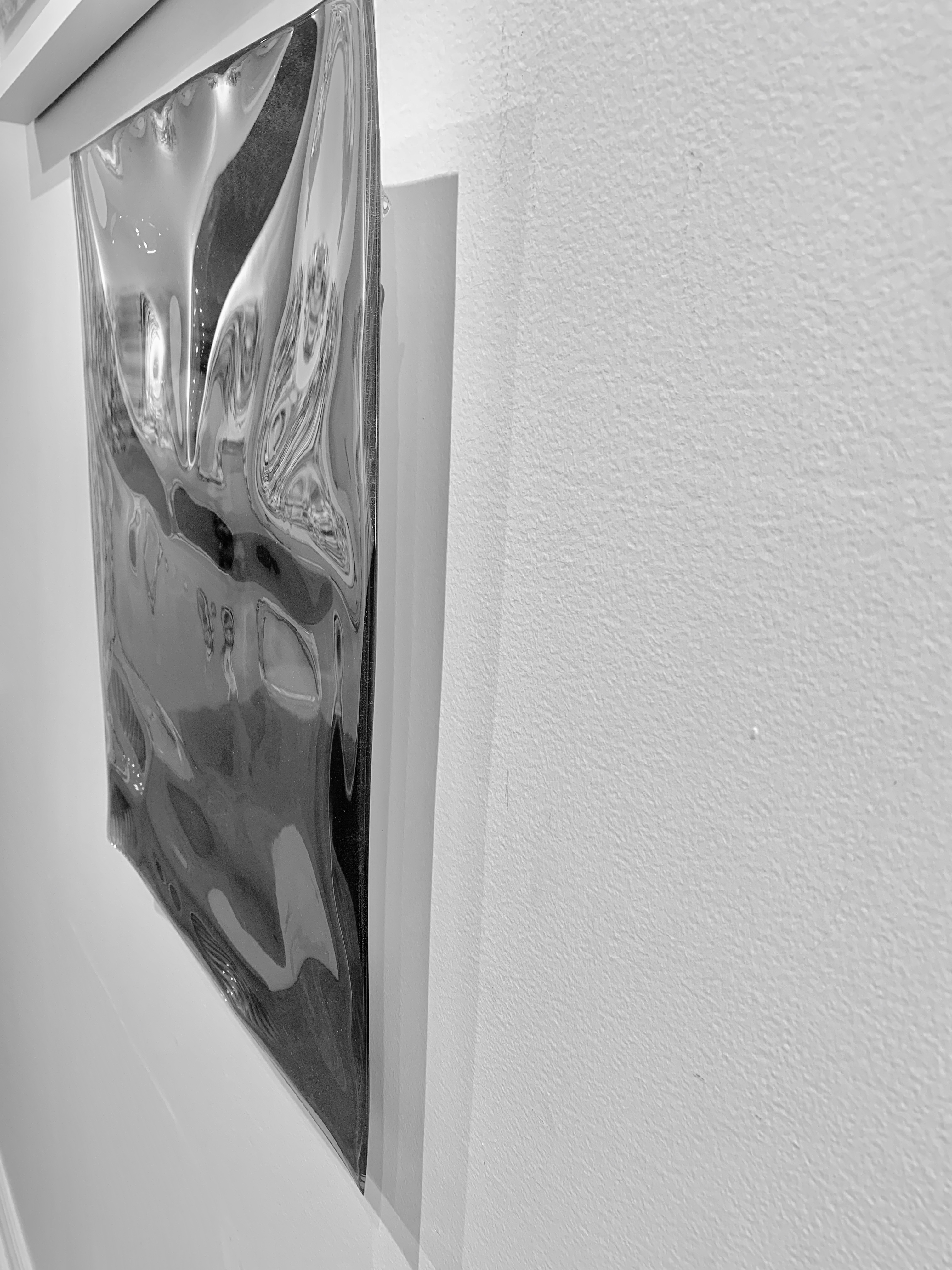 a: the gallery informs us that the work is illusional, has a great sense of movement and rhythm, and it is not 3-d (see additional images below, for a sense of the depth). this is the last silver work by cathy available - tom ford recently acquired a silver and black duo. if the photos appear graphite, that is not correct - the work is very much silver.